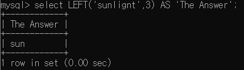 1. LEFT(문자열 값, 문자열의 시작부터 갖고올 값의 개수)
