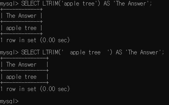 : 문자 표현의 왼쪽에 있는 빈칸을 없앤다. (단어 사이의 빈칸은 없애지 않는다.)